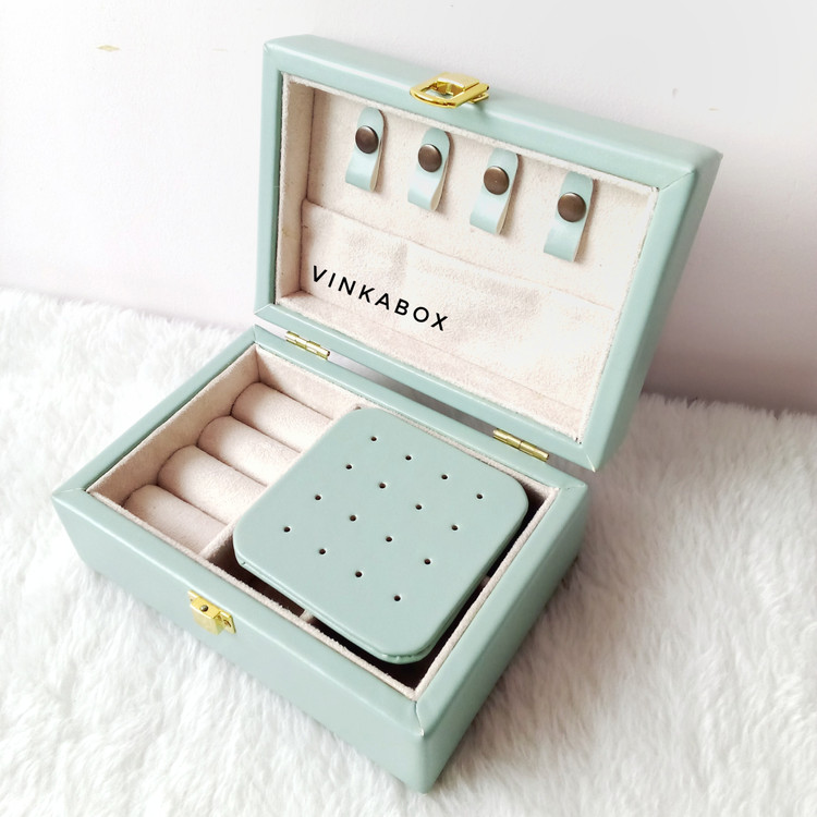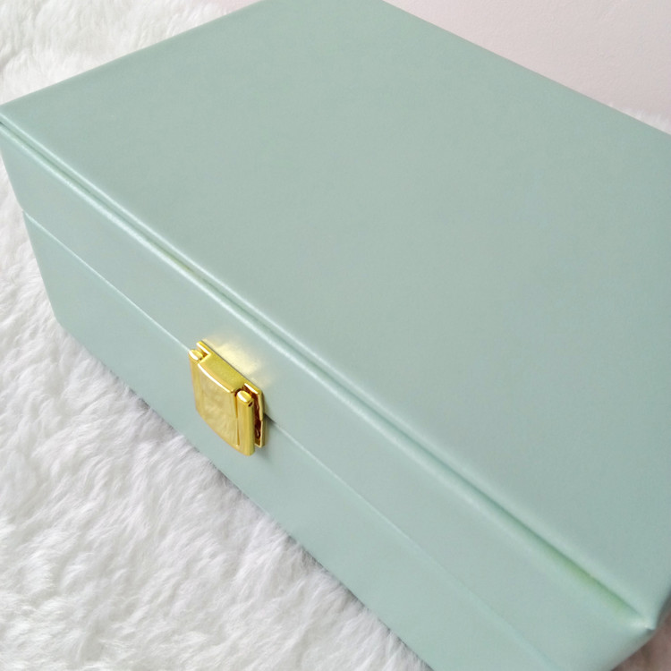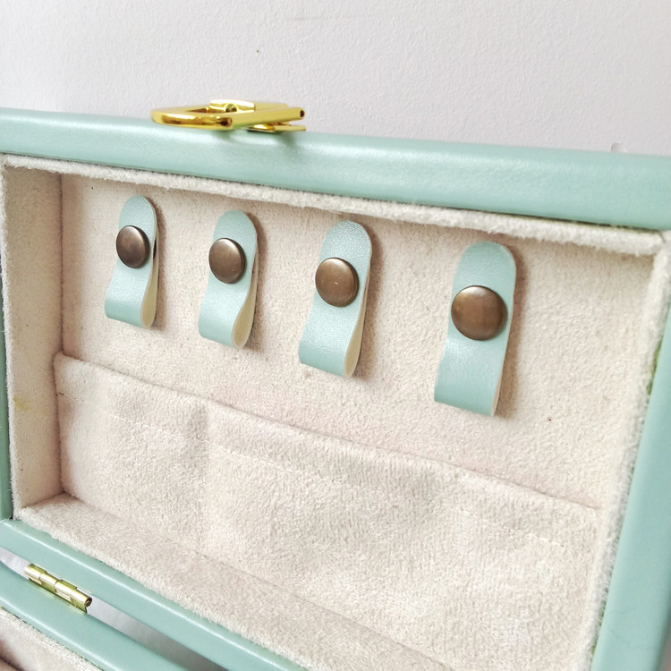 رنگی خاص و چشمنواز، این جعبه چرم سبز حس طراوت و خاص بودن را به میز آرایش یا کمد شما میبخشد. طراحی داخلی شامل جای مخصوص گردنبند، انگشتر و گوشواره است که با صفحه چرمی، نظم را حفظ میکند. انتخابی جذاب برای افرادی که به جزئیات و ظاهر اهمیت میدهند.