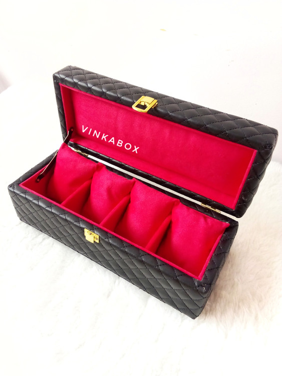 جعبه ساعت چهار خانه، انتخابی ایدهآل برای کسانی است که به ساعتهای خود ارزش و نظم میبخشند. این جعبه با طراحی شیک و متریال باکیفیت، فضایی امن و زیبا برای چهار عدد از ساعتهای مورد علاقه شما فراهم میکند.
