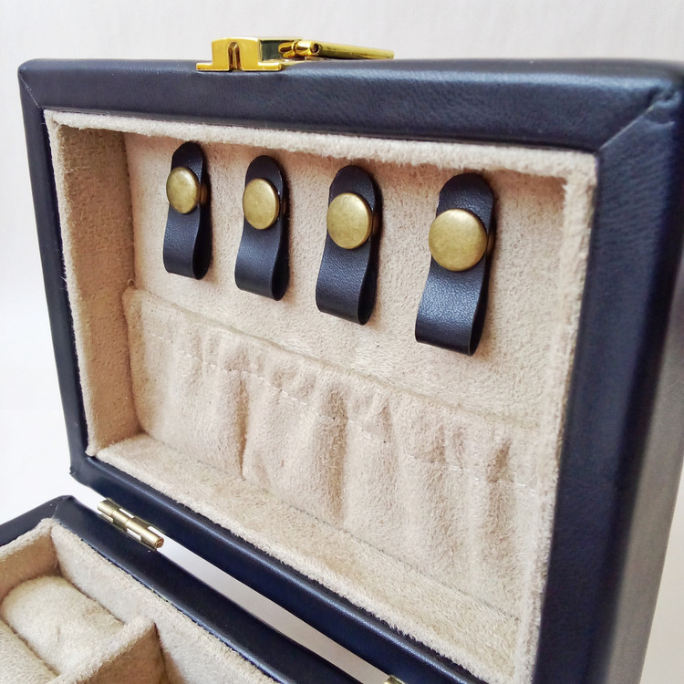 جعبه جواهرات مدل لوکس نهتنها از نظر طراحی ظاهری چشمنواز است، بلکه از نظر کاربردی نیز کاملاً هوشمندانه طراحی شده است. ترکیب چرم با رنگ ملایم و قفل فلزی طلایی، جلوهای زنانه و خاص به آن بخشیده است.